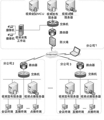 旺城國(guó)際各下屬單位都已于1999年建設(shè)好公司內(nèi)部局域網(wǎng),并且都有10M公網(wǎng)出口。旺城國(guó)際希望借助視頻會(huì)議幫助協(xié)調(diào)解決日前較為突出的營(yíng)運(yùn)問(wèn)題,同時(shí)能將會(huì)議現(xiàn)場(chǎng)的視頻直播到公網(wǎng)上,供所有單位職工(需有權(quán)限)觀看多方開(kāi)會(huì)的現(xiàn)場(chǎng),并錄制成MPEG-4格式的文件,放置在公司內(nèi)部局域網(wǎng)上,作為會(huì)議記錄存檔,供所有員工點(diǎn)播。具體要求如下: