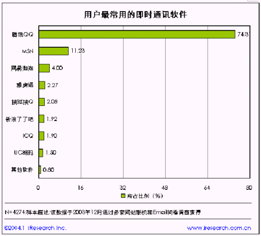 根據(jù)不完全統(tǒng)計,2003 年中國即時通訊軟件的最高在線人數(shù)已經突破了550 萬人。其中,QQ、MSN Messenger、網易泡泡、UC 朗瑪這四個即時通訊軟件占據(jù)了市場的絕大部分份額。我們預計未來隨著中國上網人口的增長,以及IM