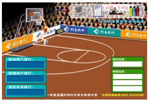 挑戰(zhàn)籃球游戲是一款全新的基于電視/網(wǎng)絡(luò)平臺(tái)的體育休閑娛樂(lè)游戲,用戶可以借助短信等手段參與游戲,在游戲中不但可以贏取游戲積分,通過(guò)積分兌換獎(jiǎng)品,還可以身臨其境地感受賽場(chǎng)上投籃的快感,F(xiàn)在拿起你的手機(jī)或電話,選擇一下角度吧!