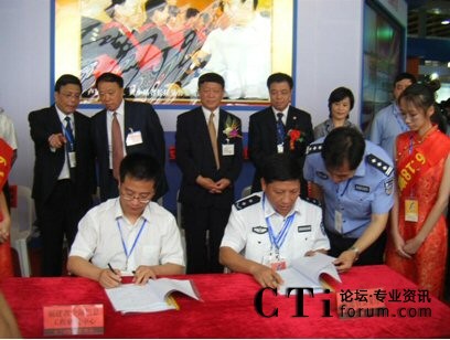 簽約現(xiàn)場,(右)福建省公安廳副廳長,(左)科達公司總經(jīng)理陳衛(wèi)東先生