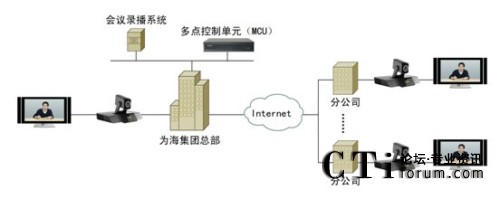 科達視頻會議解決方案就部署而言非常簡單:為海集團深圳總部的機房架設(shè)一臺多點控制單元(MCU),總部會議室、各分公司的會議室則各部署一套視頻會議終端?偛繋挒10/100M,各地分公司均通過普通ADSL接入。系統(tǒng)拓?fù)鋱D如下: