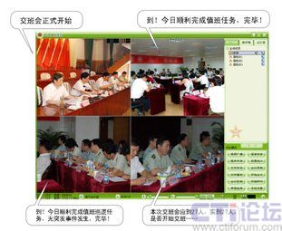 另外,通過該系統(tǒng)還可隨時調(diào)用各值班點的視頻圖象,在發(fā)生突發(fā)事件時各指揮人員能夠通過共同查看相關視頻資料來共商處理方案,從而有效的做好應急處理工作。