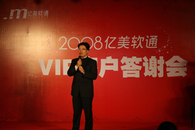 2008年12月29日,在港澳中心舉辦的2008億美軟通VIP客戶答謝會圓滿結束,參會的嘉賓客戶和合作伙伴是來自IT行業(yè)、金融行業(yè)、品牌服務業(yè)等各行業(yè)的優(yōu)秀企業(yè)的領導和代表,他們分別是:中國通信企業(yè)協(xié)會增值業(yè)務委員會、GOOGLE(中國)投資有限公司、微軟(中國)投資有限公司、百度公司、網(wǎng)易公司、TOM公司、凡客誠品、中信銀行、工銀瑞信基金管理有限公司、泰達荷銀基金管理有限公司、新東方教育集團、上海思創(chuàng)服飾有限公司、樂友達康、神州數(shù)碼斯特其股份、青鳥健身、龐大汽貿集團、北京高校畢業(yè)生就業(yè)指導中心、國政通網(wǎng)絡科技有限公司、中寬網(wǎng)信公司。