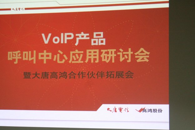 2006年9月8日,由中國VoIP業(yè)界的引領(lǐng)者大唐高鴻數(shù)據(jù)網(wǎng)絡(luò)技術(shù)股份有限公司(股票簡稱:高鴻股份;股票代碼:000851)主辦的大唐高鴻VoIP產(chǎn)品呼叫中心應(yīng)用研討會在北京大唐電信集團(tuán)主樓隆重舉行,此次會議由CTI論壇協(xié)辦。這是會議是大唐高鴻攜其VoIP產(chǎn)品進(jìn)軍呼叫中心領(lǐng)域的里程碑。參加會議的代表來自虛擬運(yùn)營商、VoIP公司、呼叫中心公司,企業(yè)行業(yè)客戶以及知名媒體共120余人,大唐高鴻還向會議代表介紹了其VoIP產(chǎn)品與呼叫中心廠商的合作計劃,預(yù)示著大唐高鴻正式向全國展開VoIP產(chǎn)品在呼叫中心行業(yè)中的應(yīng)用的市場攻勢。