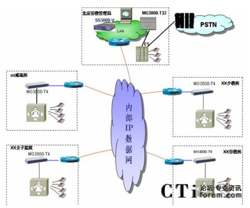 根據(jù)北京監(jiān)獄管理局情況大唐高鴻提出在監(jiān)獄系統(tǒng)現(xiàn)有的網(wǎng)絡(luò)建立IP語(yǔ)音系統(tǒng),使各地監(jiān)獄之間的語(yǔ)音服務(wù)運(yùn)營(yíng)在現(xiàn)有完善的IP網(wǎng)絡(luò)上,實(shí)現(xiàn)“語(yǔ)音、數(shù)據(jù)、視頻三網(wǎng)合一”的先進(jìn)網(wǎng)絡(luò)。