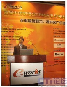 MyCRM于4月25日在天津參加了由e-works 主辦的主題為“挖掘營銷潛力,提升客戶價值”的“首屆中國制造業(yè)CRM應(yīng)用與網(wǎng)絡(luò)營銷年會”。國內(nèi)外優(yōu)秀知名CRM廠商MyCRM、微軟、賽捷、TurboCRM齊集本屆年會。并就中國制造業(yè)CRM應(yīng)用及圍繞中國制造企業(yè)如何進(jìn)行管理創(chuàng)新、營銷創(chuàng)新和服務(wù)創(chuàng)新等方面進(jìn)行了演講。