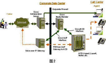 ----采用基于Internet的呼叫中心與電子商務網(wǎng)站相結合的體系結構,是實現(xiàn)競爭優(yōu)勢的重要手段。通過將呼叫中心與Internet集成為一體,可以提供自我?guī)椭、協(xié)同合作、基于技能的路由、集成回叫、電子郵件路由、自動電子郵件響應、集成工作流程管理、預設的工作流程、動態(tài)內容整合等諸多功能,從而實現(xiàn)網(wǎng)絡客戶互動。Cisco客戶互動套件(CCIS)正體現(xiàn)了這一思想。