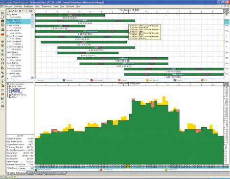 eQueue人力資源管理系統(tǒng)允許管理者在實(shí)施新的服務(wù)標(biāo)準(zhǔn)之前對調(diào)整帶來的影響進(jìn)行檢測。What-If功能可以被用于檢測各種不同的全職和兼職座席服務(wù)混合比例對成本和服務(wù)級別影響。