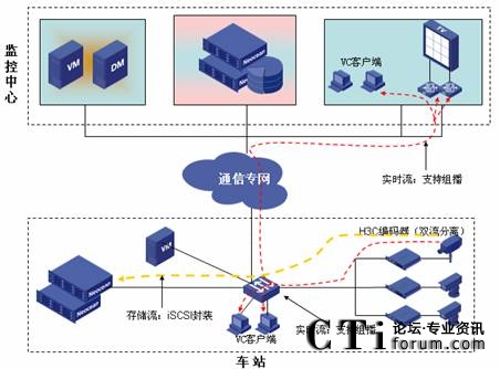 由此可見,視頻監(jiān)控IP化是軌道交通行業(yè)應(yīng)用發(fā)展必然,實(shí)際上,北京、成都、杭州、蘇州等城市新建的地鐵視頻監(jiān)控系統(tǒng),基本上都采用了IP技術(shù)解決方案。在杭州華三通信技術(shù)有限公司(簡(jiǎn)稱:H3C)參與的杭州地鐵1號(hào)線、蘇州地鐵1號(hào)線等的CCTV項(xiàng)目中,拋棄了傳統(tǒng)的模擬矩陣,采用了H3C iVS IP視頻監(jiān)控解決方案,在控制中心與車站都可對(duì)前端圖像可以靈活進(jìn)行控制,同時(shí)車站的管理工作站的用戶只能管理本站內(nèi)的視頻監(jiān)控圖像和進(jìn)行圖像查詢,在控制中心可以進(jìn)行所有車站的圖像管理。H3C iVS IP視頻監(jiān)控系統(tǒng)支持精確到秒級(jí)的高效檢索,當(dāng)出現(xiàn)緊急情況時(shí),車站/控制中心都能夠即時(shí)回放1分鐘之前的事故現(xiàn)場(chǎng)圖像。H3C的方案采用了視頻流和控制流相分離的NGN架構(gòu),視頻流不用經(jīng)過傳統(tǒng)的流媒體服務(wù)器轉(zhuǎn)換,直接由前端編碼器發(fā)起iSCSI流寫入到后端的IP SAN磁盤陣列中,滿足端到端的“0”瓶頸視頻圖像存儲(chǔ)。在視頻監(jiān)控系統(tǒng)中的任何設(shè)備出現(xiàn)意外事件時(shí)如設(shè)備故障、設(shè)備掉電等,可以保證掉電之前的歷史圖像完整性,為分析事故原因提供依據(jù)。
