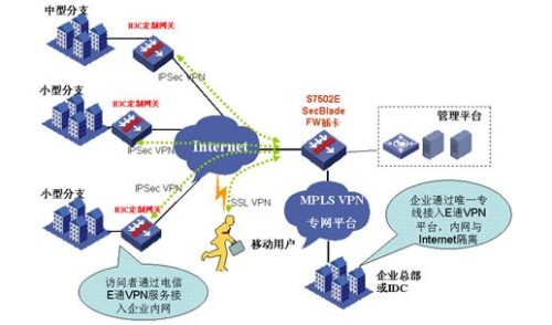 企業(yè)專網(wǎng)作為企業(yè)內(nèi)部信息分享的重要通道,已經(jīng)成為提升工作效率的關(guān)鍵。但由于企業(yè)專網(wǎng)前期投資巨大、建設(shè)速度遠落后于企業(yè)發(fā)展速度,因此以租賃形式為主的VPN業(yè)務(wù)漸漸興起。上海電信作為國內(nèi)領(lǐng)先的運營商,與業(yè)界領(lǐng)先的IToIP解決方案提供商H3C的合作,推出的“E通VPN”品牌業(yè)務(wù),提供“網(wǎng)絡(luò)+安全+服務(wù)+Qos”綜合信息服務(wù),受到了企業(yè)用戶的廣泛歡迎。