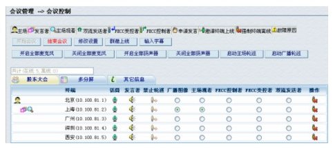 - 主場(chǎng)輪巡:主會(huì)場(chǎng)可以輪巡觀看分會(huì)場(chǎng)的圖像,這樣會(huì)議主席可以隨時(shí)了解各個(gè)分會(huì)場(chǎng)的情況,以便控制會(huì)議進(jìn)度和維持會(huì)場(chǎng)氣氛。