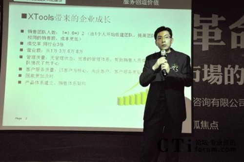 另外,濟(jì)南創(chuàng)弈工場總經(jīng)理趙小峰任曉峰與現(xiàn)場嘉賓分享了自身創(chuàng)業(yè)與成長過程。創(chuàng)弈工場科技有限公司成立于2008年,是由山東大學(xué)創(chuàng)業(yè)團(tuán)隊(duì)發(fā)展而來的、以先進(jìn)電子商務(wù)架構(gòu)和企業(yè)CI設(shè)計(jì)專家為目標(biāo)的公司。趙總?cè)慰偸且晃?0后互聯(lián)網(wǎng)新銳,他表示:“公司運(yùn)用XTools具有管理思想的系統(tǒng)幫助管理這支年輕的隊(duì)伍,使其健康發(fā)展,對于創(chuàng)業(yè)者來說,銷售體系的管理是至關(guān)重要的,這樣我們少走了彎路!