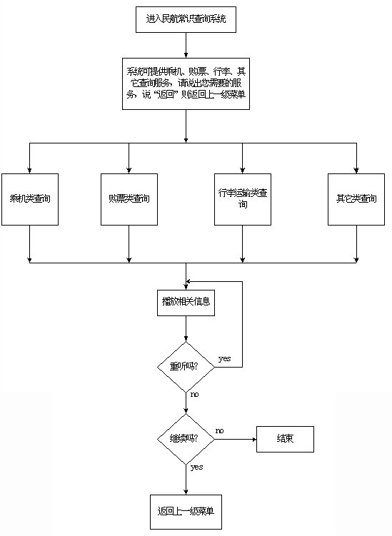 該系統(tǒng)主要采用語(yǔ)音技術(shù)實(shí)現(xiàn)航班信息查詢,系統(tǒng)的主業(yè)務(wù)流程如圖一至五示。