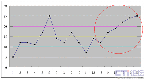 6就是在控制圖中,數據連續(xù)有6個點往上或往下;