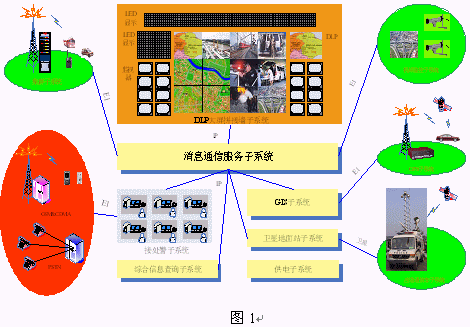消息隊列服務(wù)器采用國際領(lǐng)先的計算機(jī)支持的協(xié)同技術(shù)進(jìn)行設(shè)計開發(fā),實現(xiàn)三臺合一指揮調(diào)度系統(tǒng)眾多子系統(tǒng)間的無縫集成,包括數(shù)據(jù)流(包括信令)的集成、工作流的集成、應(yīng)用的集成、信息的集成、語音鏈路的集成。它是好易通科技三臺合一指揮調(diào)度系統(tǒng)所有子系統(tǒng)之間進(jìn)行TCP/IP消息傳遞的中轉(zhuǎn)站,負(fù)責(zé)消息的分發(fā)和系統(tǒng)協(xié)同功能。它提供了接處警座席子系統(tǒng)、GIS警用地理信息子系統(tǒng)、集群通信系統(tǒng)、GPS衛(wèi)星定位子系統(tǒng)、視頻監(jiān)控子系統(tǒng)、大屏幕顯示子系統(tǒng)、應(yīng)急通信車子系統(tǒng)、綜合信息查詢子系統(tǒng)之間相互數(shù)據(jù)通信的接口,如圖1所示。