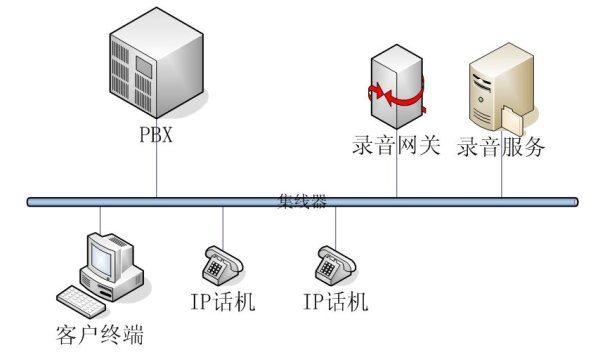 NETLOG VOIP語音記錄系統(tǒng)可以方便靈活的支持任何網(wǎng)絡(luò)結(jié)構(gòu),并可以根據(jù)用戶要求指定工作的方式。由于采用端口鏡像技術(shù),如果要直接采用Switch連接,則要求Switch必須支持端口鏡像功能;如果Switch不支持端口鏡像,則將所有要錄音的話機與錄音網(wǎng)關(guān)連接在同一個集線器上,錄音網(wǎng)關(guān)支持這種工作方式。