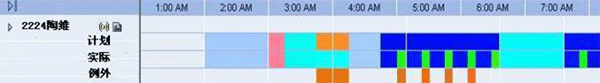 如圖,通過與PBX、CTI系統(tǒng)的接口,排班系統(tǒng)獲取座席的實(shí)時(shí)狀態(tài)信息,如登錄、接聽、話后處理、登出等,并以不同的顏色進(jìn)行表示,與計(jì)劃的班次安排進(jìn)行比對(duì),從而監(jiān)控到座席的遵時(shí)例外(非遵時(shí))。通過這種方式,座席的實(shí)時(shí)狀態(tài)變化能夠及時(shí)的得到監(jiān)控,便于管理人員精確的監(jiān)控遵時(shí),同時(shí),也把班長(zhǎng)從遵時(shí)管理中部分解脫出來(lái)。