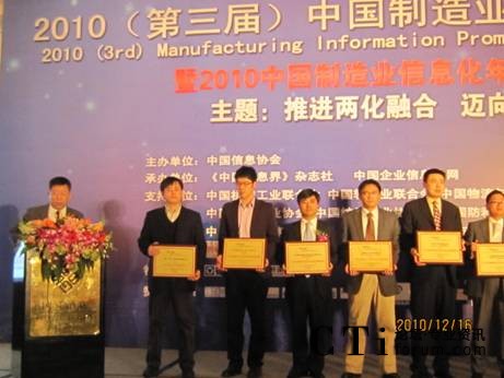 CTI論壇(ctiforum)12月27日消息(記者 潘婷婷):12月16日,由中國信息協(xié)會(huì)聯(lián)合我國十幾家制造業(yè)行業(yè)協(xié)會(huì)共同舉辦的“2010(第三屆)中國制造業(yè)信息化推進(jìn)大會(huì)暨中國制造業(yè)信息化年度頒獎(jiǎng)盛典”在北京成功舉行。中國信息協(xié)會(huì)會(huì)長(zhǎng)盧時(shí)徹、中國機(jī)械工業(yè)聯(lián)合會(huì)特別顧問、國家信息化專家咨詢委員會(huì)委員朱森第、工業(yè)和信息化部信息化推進(jìn)司安筱鵬等領(lǐng)導(dǎo)出席此次活動(dòng)并發(fā)表演講。會(huì)上,八百客獲得“2010年度CRM領(lǐng)軍企業(yè)”大獎(jiǎng),至此,八百客已經(jīng)斬獲“中國云計(jì)算領(lǐng)軍企業(yè)”和“CRM領(lǐng)軍企業(yè)”雙料大獎(jiǎng),為2010年畫上了圓滿的句號(hào)。
