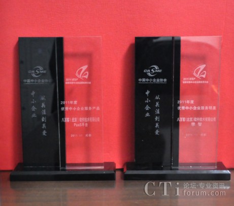 作為國內(nèi)首家SaaS廠商,八百客積極推動云計算在中小企業(yè)中的宣傳與運用。2006年,八百客在國內(nèi)率先推出管理自動化開發(fā)平臺800APP, 它擴展了按需服務(wù),并實現(xiàn)了客戶可根據(jù)需要自定制應(yīng)用程序,成為了改變應(yīng)用程序開發(fā)的一個新途徑。為表彰八百客在中小企業(yè)信息化中做出的杰出貢獻,本次大會特別為八百客頒發(fā)了“2011年度優(yōu)秀中小企業(yè)服務(wù)產(chǎn)品大獎”,此外還授予八百客總經(jīng)理李智 “2011年度優(yōu)秀中小企業(yè)服務(wù)明星大獎”。