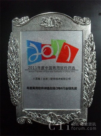 CTI論壇(ctiforum)12月20日消息(記者 張潔): 12月9日,以“模式創(chuàng)新帶動產(chǎn)業(yè)及應用轉(zhuǎn)型”為主題的“信息化領袖峰會暨商用軟件評選頒獎大會”在上海隆重舉行。本次大會分四個環(huán)節(jié)進行,其中最重要的環(huán)節(jié)莫過于揭曉“2011年度中國商用軟件評選”結果,作為全球領先的企業(yè)管理軟件供應商八百客(www.800app.com)成功斬獲2011年度中國商用軟件評選“在線CRM行業(yè)領先獎”。同時,八百客的三位企業(yè)用戶美國宣偉涂料公司的潘總、上海企盈投資管理有限公司的何總、華圖教育的王總分別獲得 “2011年度信息化貢獻人物獎”大獎。
