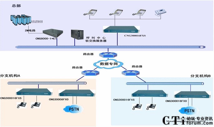 通常情況下座席必須安裝在呼叫中心平臺附近500米之內(nèi)的地方,在很多情況下,分布式的呼叫中心座席分布在各個(gè)城市。因此需要為呼叫中心平臺提供遠(yuǎn)程的呼叫中心座席人員。本方案主要描述的是模擬語音網(wǎng)關(guān)在呼叫中心的應(yīng)用。