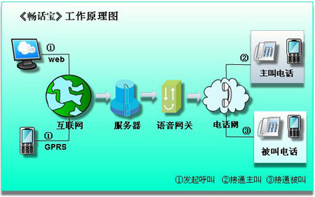 具體來講就是在手機里安裝“暢話寶”應用軟件(在計算機桌面提供web客戶端),該軟件帶有通信錄和觸發(fā)GPRS的功能,可以通過無線互聯(lián)網(wǎng)將電話號碼發(fā)送到平臺,通過PSTN發(fā)起通話(2方或多方)。這個手機客戶端軟件,可無縫對接到固網(wǎng)增值業(yè)務平臺上(多方通信平臺)。客戶端軟件自身攜帶有通信錄功能,調(diào)用方便。部分機型可調(diào)用手機本身的通信錄。