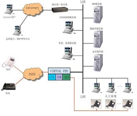 "12345"政府熱線系統(tǒng)是集語(yǔ)音,傳真和數(shù)據(jù)為一體的綜合電話服務(wù)系統(tǒng),該系統(tǒng)通過(guò)政府業(yè)務(wù)網(wǎng)絡(luò),以TCP/IP協(xié)議與業(yè)務(wù)主機(jī)(單機(jī)或多機(jī))進(jìn)行通訊以獲取數(shù)據(jù)。其結(jié)構(gòu)圖如下: