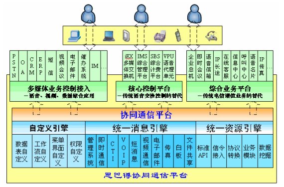 為此,在行業(yè)企業(yè)信息化的大思路下,思巴得公司以MS3000 IP多業(yè)務通信系統(tǒng)為基礎適時推出了面向行業(yè)企業(yè)的更先進、更靈活、更經(jīng)濟、更具競爭實力及最全面的綜合通信完全解決方案――“多媒體協(xié)同通信”,是綜合各種通信方式(如:語音、短信、視頻、數(shù)據(jù)等),與各種信息服務平臺系統(tǒng)(包括OA、ERP、CRM等等)融合的大通信概念下的協(xié)同通信,