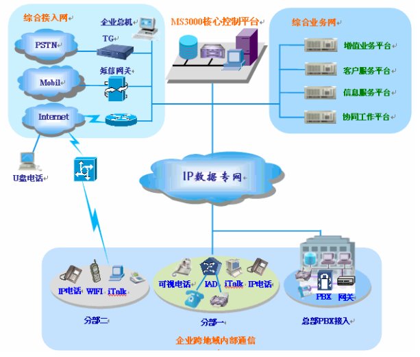 多功能的內(nèi)部通信業(yè)務(視頻、WiFi無線、軟電話漫游、即時通信、語音信箱、多方通話等)