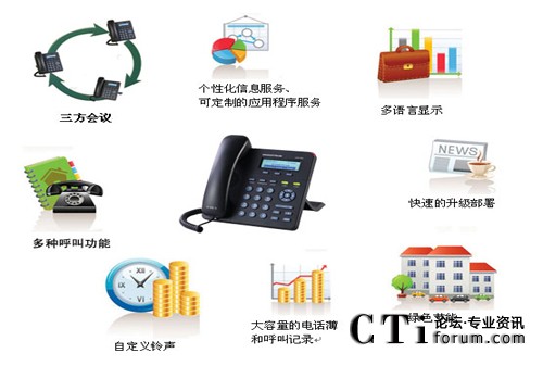 - 用戶自定義鈴聲,SRTP,SIP over TLS,支持多種語言和XML,支持個性化的信息服務(wù)、可定制的應(yīng)用程序服務(wù)支持和多語言顯示(例如:本地天氣等)。