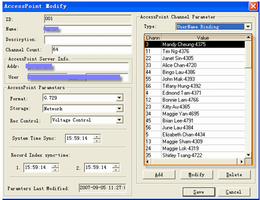 在渣打銀行錄音系統(tǒng)中,這個(gè)角色是用于綁定錄音物理端口(可以理解為某一個(gè)分機(jī))的,使這個(gè)端口的錄音資料易于辨別,如果沒有這種綁定,錄音資料里將只是顯示這個(gè)第幾號(hào)AP(AccessPoint)以及第幾號(hào)物理端口的錄音。此種綁定關(guān)系是通過錄音管理員程序建立、修改、刪除,動(dòng)態(tài)地應(yīng)用到整個(gè)系統(tǒng)中,如下圖所示: