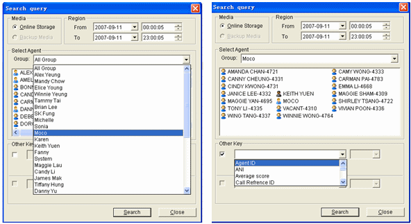 管理員對(duì)在線錄音的記錄可以采用多種參數(shù)查詢: