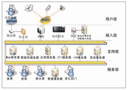 本方案采用多媒體統(tǒng)一服務(wù)的呼叫中心中間件,不僅支持傳統(tǒng)的PBX系統(tǒng),而且支持最新的IP PBX融合通信系統(tǒng),使小型呼叫中心也可以享受到以前只有大型呼叫中心才具備的系統(tǒng)功能,滿足企業(yè)對CTI技術(shù)日新月異的需求,為企業(yè)提供強大、穩(wěn)定、高性價比的CTI平臺。