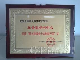 為了樹立軟件行業(yè)創(chuàng)新業(yè)務(wù)的典范,分享不同企業(yè)的軟件發(fā)展成果,本次大會(huì)通過官網(wǎng)的產(chǎn)品展示,用戶體驗(yàn)投票和軟博會(huì)專家顧問團(tuán)評(píng)選的方式,評(píng)選出了的“軟博會(huì)十大創(chuàng)新產(chǎn)品”獎(jiǎng)。北京天潤融通科技有限公司的“托管型呼叫中心服務(wù)”,以其在呼叫中心鄰域內(nèi)創(chuàng)新的saas業(yè)務(wù)模式,簡單、易用、可依靠的服務(wù)特色,獲此殊榮。