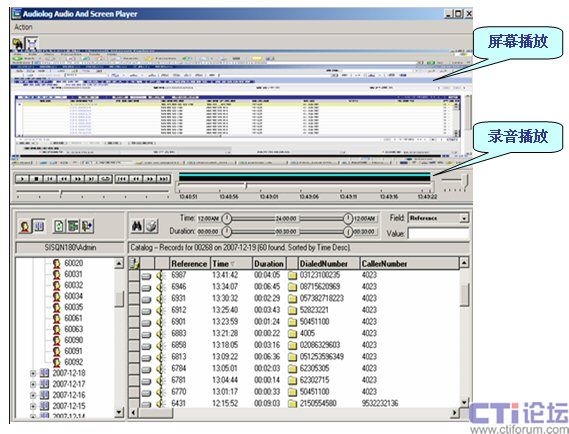 在對座席電話進(jìn)行語音錄音的同時,Audiolog Screen Capture可對座席的電腦屏幕的變化及座席進(jìn)行業(yè)務(wù)的操作進(jìn)行同步記錄,可在回聽播放電話錄音的同時,對座席在電腦屏幕上整個業(yè)務(wù)流程進(jìn)行重播。