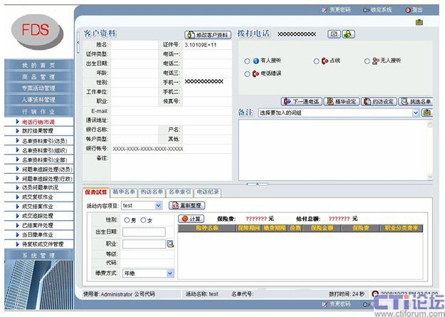 TM Pro電話營銷系統(tǒng)是一套能根據(jù)客戶需求量身訂做,且擁有完善的接口及方便的操作界面,又能提供完整功能的電話營銷外撥管理系統(tǒng)。功能方面,TM Pro電話營銷系統(tǒng)除了提供名單匯入、分派及電訪人員的撥打處理等基本功能外,還能提供人事管理、系統(tǒng)管理及報表中心等功能,使得整個系統(tǒng)架構(gòu)更加完整,也更符合電話營銷在市場營銷策略和內(nèi)部營運管理上的需求;效果方面,TM Pro電話營銷系統(tǒng)的設(shè)計融入了開發(fā)人員多年在電話營銷方面的經(jīng)驗,使該系統(tǒng)不僅能提升電話營銷人員的工作效率,更能提高電話營銷人員的銷售產(chǎn)值,也可藉由此系統(tǒng)廣泛地收集客戶的消費習性及背景數(shù)據(jù),以作為未來客戶關(guān)系管理及銷售的重要參考依據(jù)。目前,TMPro 已在多家知名金融機構(gòu)應(yīng)有,并得到用戶的好評。
