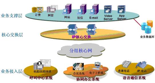 業(yè)務(wù)支撐層:計(jì)費(fèi)、網(wǎng)管、多媒體視頻、應(yīng)用服務(wù)器等各種功能服務(wù)器。可與用戶的業(yè)務(wù)數(shù)據(jù)庫對(duì)接,為整個(gè)業(yè)務(wù)提供有力的支撐平臺(tái)。確保有效快速的處理呼叫流程、提高工作效率,評(píng)估呼叫中心的表現(xiàn)。
