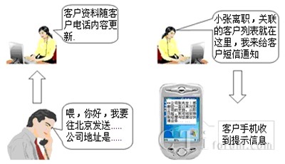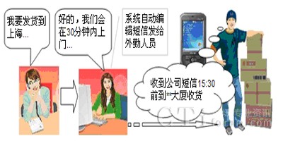 外勤短信通知?蛻綦娫捪聠,貨品規(guī)格重量記入數(shù)據(jù)庫,下單完畢,客服人員選擇片區(qū)取件員,輕輕一點,客戶資料及貨物資料全部發(fā)送至取件員手機,不會遺忘,不再混淆。