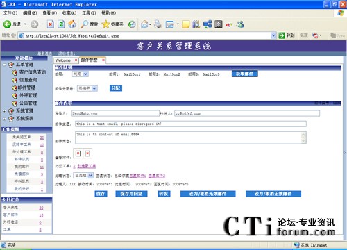 系統(tǒng)支持多個(gè)郵件隊(duì)列的管理,用戶可以根據(jù)業(yè)務(wù)的需要在系統(tǒng)管理中進(jìn)行郵箱設(shè)置。同時(shí)系統(tǒng)也支持多種模式的郵件處理,系統(tǒng)自動(dòng)分配、組長手動(dòng)分配以及座席手動(dòng)獲取,以適應(yīng)不同業(yè)務(wù)的需要。
