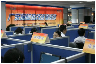 2007年6月23日下午,由中國(guó)電信廣東公司和廣東保險(xiǎn)監(jiān)督管理局合作舉辦的4008991288廣東保險(xiǎn)業(yè)電話(huà)咨詢(xún)熱線(xiàn)活動(dòng)在中國(guó)電信廣州分公司客戶(hù)服務(wù)中心舉行。省保監(jiān)局、省保險(xiǎn)協(xié)會(huì)等保險(xiǎn)監(jiān)管行業(yè)人員進(jìn)行現(xiàn)場(chǎng)監(jiān)聽(tīng),廣東省內(nèi)39家保險(xiǎn)公司的44位總經(jīng)理親自接聽(tīng)市民的咨詢(xún)或投訴,其他保險(xiǎn)資深專(zhuān)家接受市民保險(xiǎn)業(yè)務(wù)咨詢(xún)。兩小時(shí)的熱線(xiàn)活動(dòng)成功接通1122個(gè)電話(huà),并當(dāng)場(chǎng)解決和答復(fù)856個(gè)咨詢(xún)和投訴問(wèn)題。
