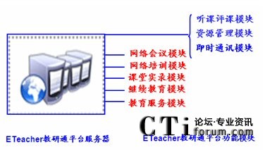 紅杉樹的“教研通”產(chǎn)品是紅杉樹根據(jù)客戶的具體情況,在自身產(chǎn)品“紅杉通”的基礎(chǔ)上,定制擴展而來,是一套適合于教育城域網(wǎng)的,集即時通訊、網(wǎng)絡會議、網(wǎng)絡培訓、課堂實錄、聽課評課、資源管理、繼續(xù)教育、教育服務等功能于一體的綜合性教育應用系統(tǒng)(包括服務器及軟件平臺)。
