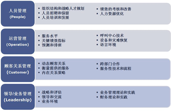 呼叫中心中高層管理人員認(rèn)證是為呼叫中心行業(yè)建立自己的“黃埔軍!薄Mㄟ^(guò)一系列的培訓(xùn),包含人員管理,運(yùn)營(yíng)管理,顧客關(guān)系管理和領(lǐng)導(dǎo)/業(yè)務(wù)管理,來(lái)為呼叫中心行業(yè)培養(yǎng)合適的中高層管理人員。
