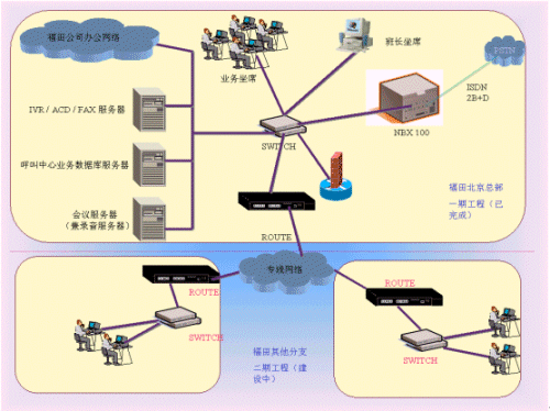 2. 隨著福田企業(yè)的發(fā)展,福田面臨的用戶群也日趨龐大。為了更好地為客戶服務(wù),同時也為了提高企業(yè)的整體形象,福田公司準(zhǔn)備建立客戶服務(wù)呼叫中心。首先在北京總部設(shè)立集中式的人工坐席,待各地分公司和總部之間的數(shù)據(jù)網(wǎng)絡(luò)建成后還要在各地分公司建立分布式的人工坐席。