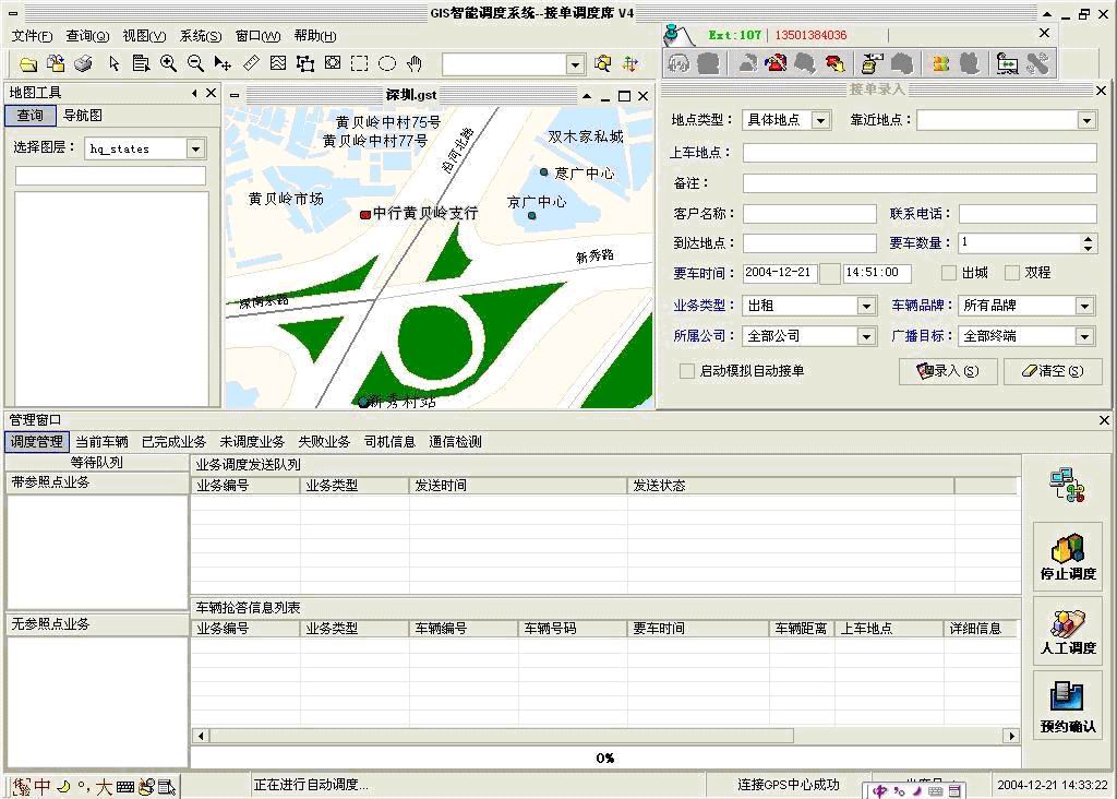 沈陽車輛調(diào)度系統(tǒng)即是采用非圖形化控件與GPS系統(tǒng)進行結(jié)合的。界面如圖: