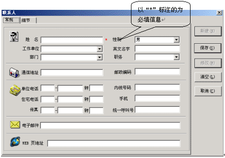 在地址簿中按鼠標(biāo)右鍵,在彈出的菜單中選擇“新鍵地址簿記錄”選項,就會彈出新建聯(lián)系人對話框,在這里添入相應(yīng)的內(nèi)容,您的一個新用戶通訊錄就建立完畢了。