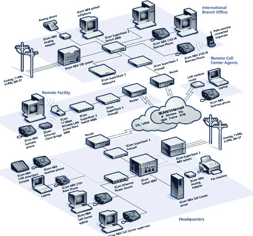 由于業(yè)務(wù)發(fā)展需要,公司屏棄了原有傳統(tǒng)PBX電話系統(tǒng),采用語音與數(shù)據(jù)融合技術(shù)的華為3com 網(wǎng)絡(luò)電話系統(tǒng)NBX,從而使企業(yè)間的通訊模式發(fā)生了革命性的改變。