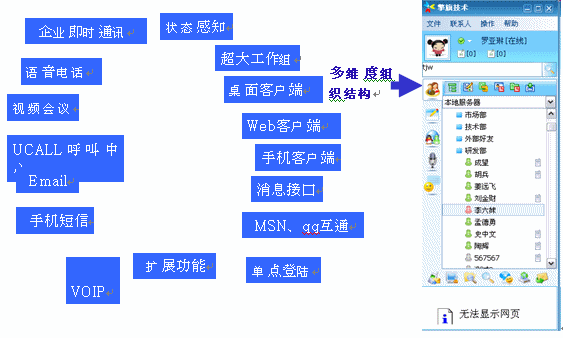 UcSTAR:Unified Communication Star,是擎旗技術研發(fā)的統一通訊平臺,它為企業(yè)提供多種通訊手段(企業(yè)即時通信、視頻、語音、郵件、短信、電話、MSN/QQ互通等),并可融合企業(yè)的各種應用系統(OA、ERP、CRM、網站、電子商務系統等);將企業(yè)對外溝通、銷售和服務、對內溝通和協作無縫整合;輕松實現無地域/時間限制的,可管理、可控制、可擴展的,集內外部溝通、服務和銷售一體化的統一工作平臺。此外,它也可被分離應用為企業(yè)IM及實時協作系統、多媒體呼叫中心系統、專業(yè)級的IP視頻會議系統等。