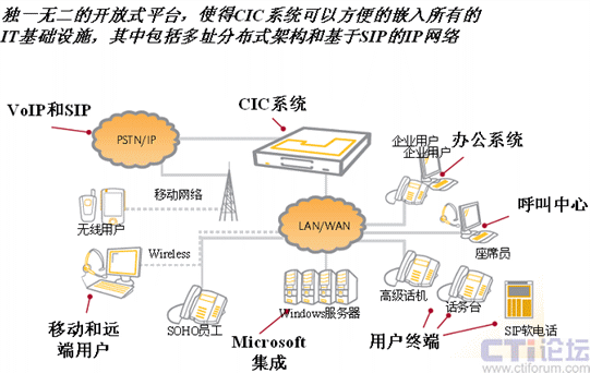 可以方便的與不同的第三方網(wǎng)絡(luò)設(shè)備,用戶(hù)終端等集成,預(yù)置的Microsoft插件使得CIC可以和Microsoft