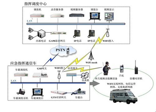 相對(duì),應(yīng)急指揮車配有車載Wi-Fi基站,接入園區(qū)內(nèi)鋪設(shè)的無線寬帶網(wǎng)絡(luò),在園區(qū)無線寬帶覆蓋范圍內(nèi)實(shí)現(xiàn)與指揮中心的語音、視頻、數(shù)據(jù)的雙向傳輸。當(dāng)Wi-Fi mesh網(wǎng)絡(luò)無信號(hào)覆蓋,指揮車還可通過2G\3G、無線集群等方式與指揮中心進(jìn)行多網(wǎng)融合語音通信。