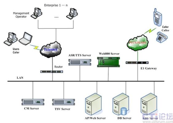 基于IP網絡的優(yōu)點,同樣也是系統(tǒng)更能滿足不同用戶的需求。系統(tǒng)的所有組成部分,均是采用分布式設計。座席可以在分布的,語音交互、呼叫管理等也都是可以分布的,部署在不同的網絡內,最大程度的根據企業(yè)的資源配置來量身定做。